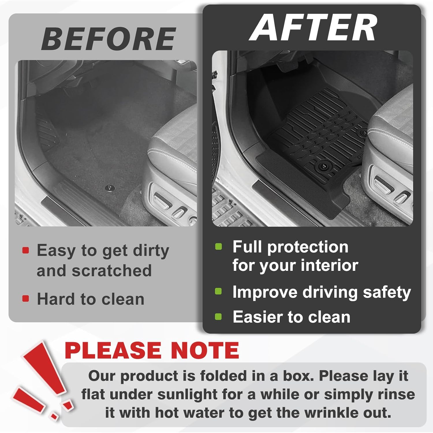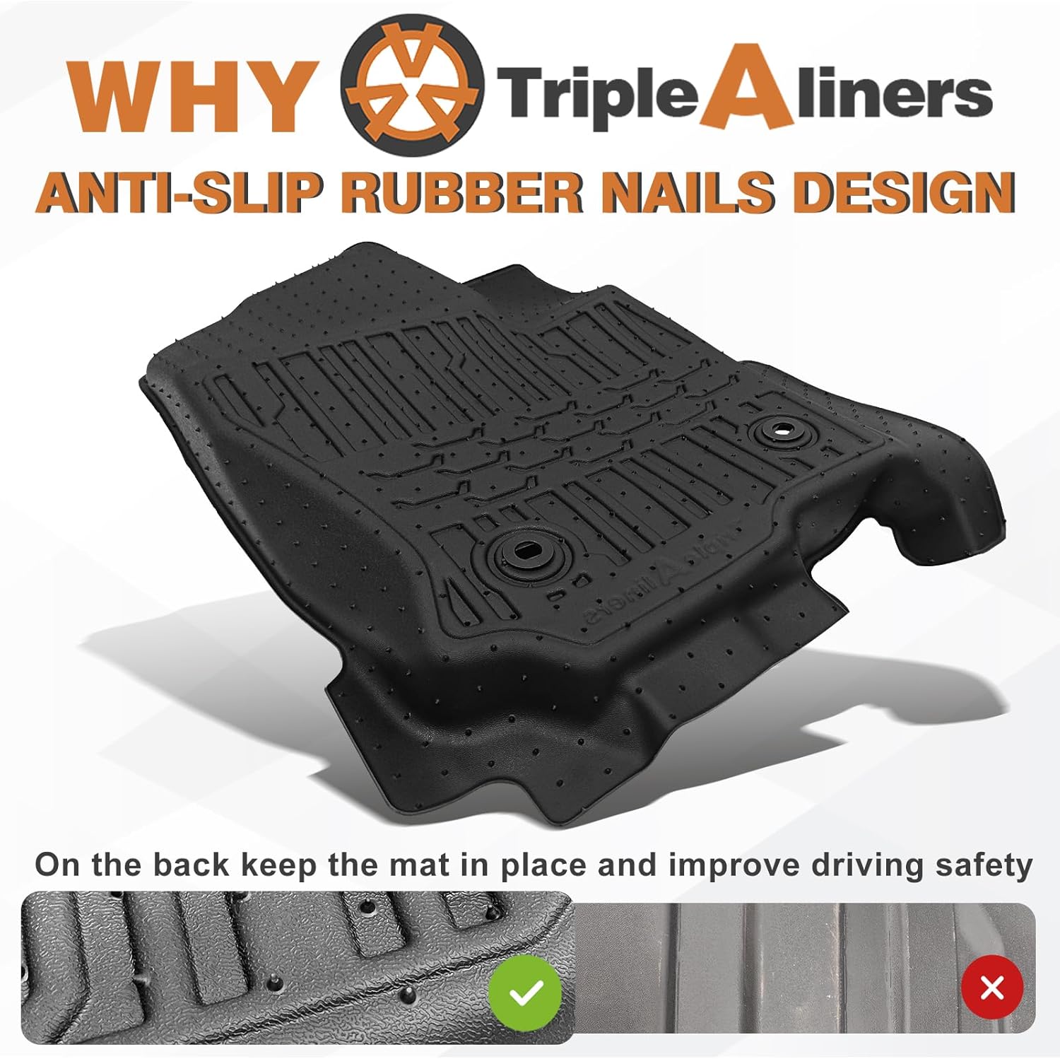 - Function & Why Choose Us: Protect your car interior with full coverage while maintaining a clean look & OEM style. Anti-slip rubber nails and reinforced corners enhance driving safety, offering anti-slip and shock-absorbing features.